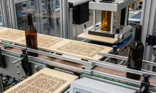 Built for printing directly on bottles, cans, and flat plywood surfaces, this printing conveyor ensures accurate transport with consistent positioning for inkjet and screen printing applications.